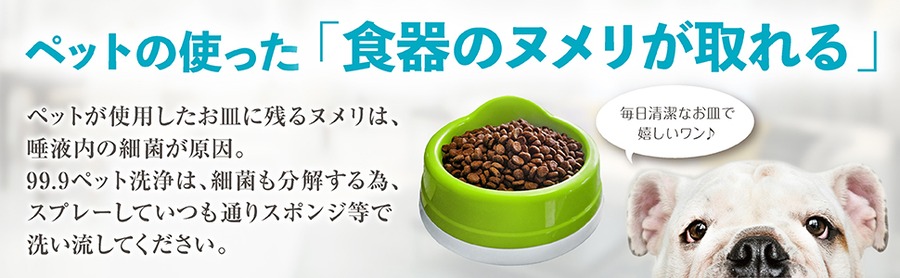 拭き取るだけでは汚れ(雑菌)は取り除けていません。99.9ペット用洗浄は、天然のミネラル成分が雑菌や汚れを浮かすので楽に取り除くことができ、さらに有効成分がコーティングされるので次に付着した汚れが除去しやすくなります。