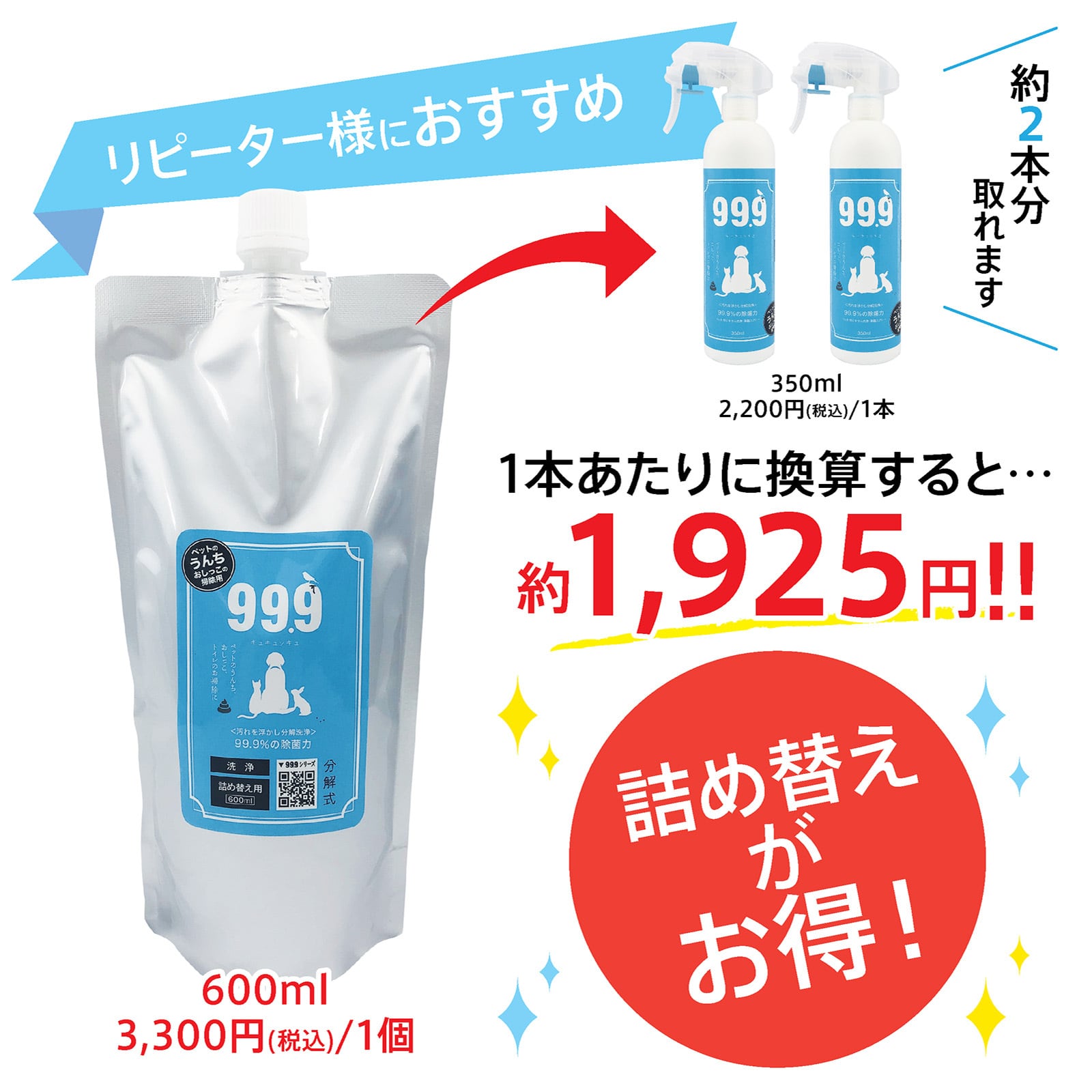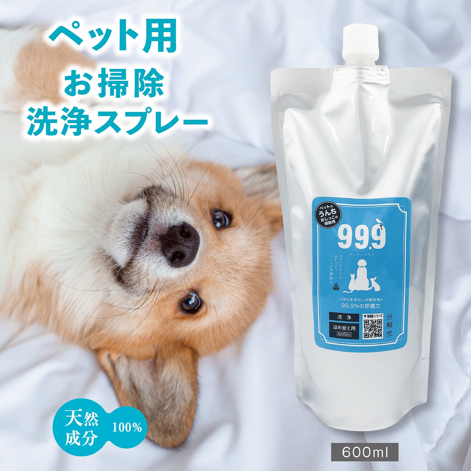 99.9ペット用洗浄600㎖【詰替用】天然成分100% ペットが舐めても安心♪トイレのお掃除 うんち おしっこ 拭き取り ペット用品 おもちゃ ケージ ペットまわり 洗浄 除菌 犬 猫 爬虫類 昆虫 動物 ケア