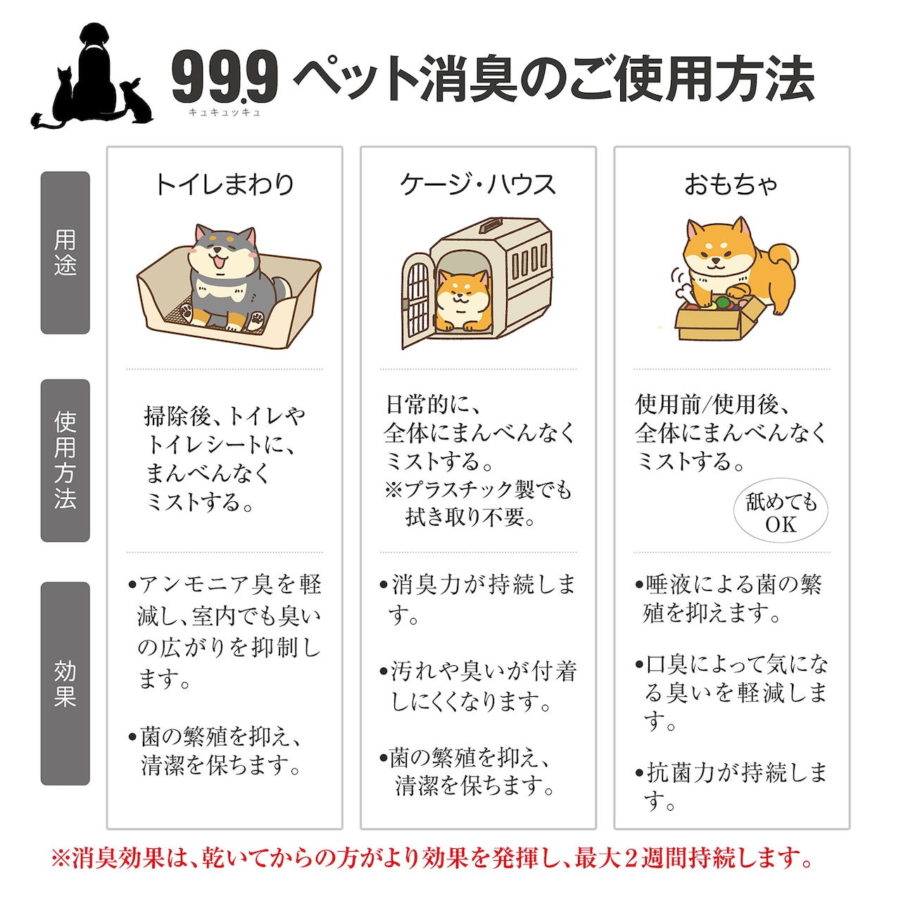 用 途:ソファやカーペット、リードや服、トイレやケージなど ペットまわりの消臭・除菌・抗菌