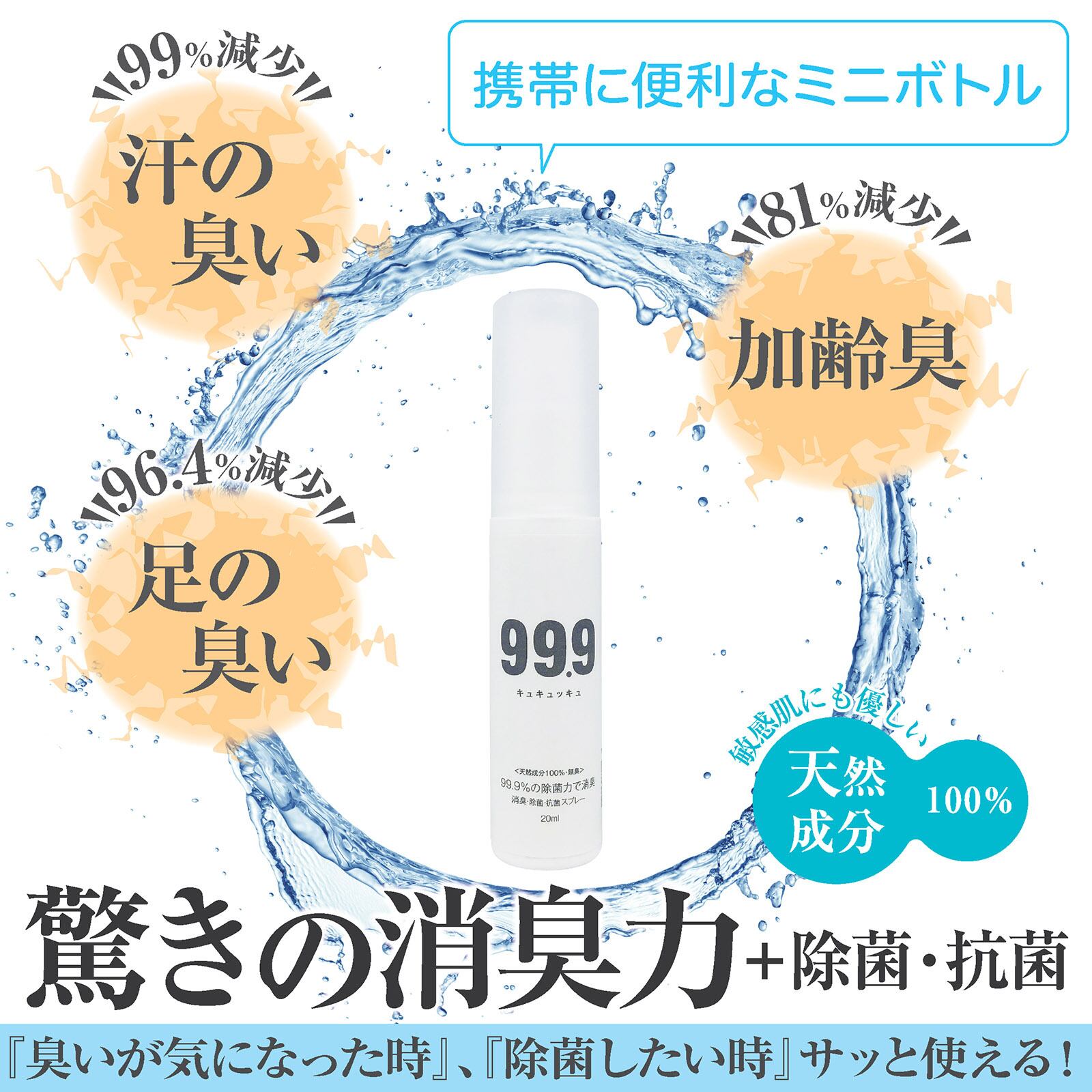 99.9消臭・除菌スプレー20㎖【携帯サイズ】持ち運びに便利! 安心の無添加 日本製 天然成分100% 無臭で安心 マスクの消臭除菌