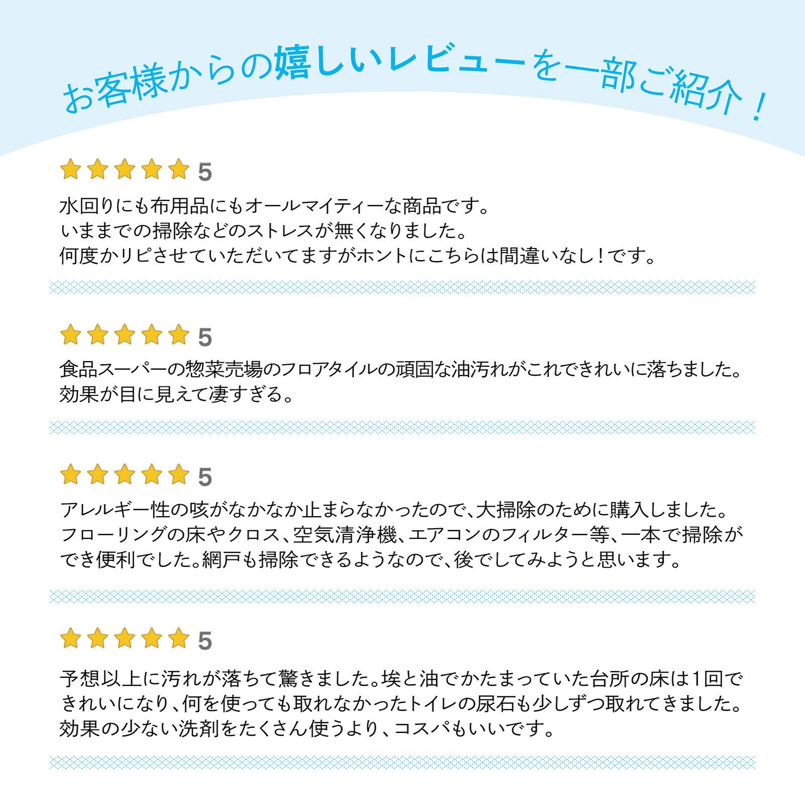 用 途:台所全体・お風呂・トイレ・窓・ガラス・鏡・壁紙・フローリングなど家全体の掃除、車内清掃、スマートフォン・メガネ・おもちゃなどのお手入れ