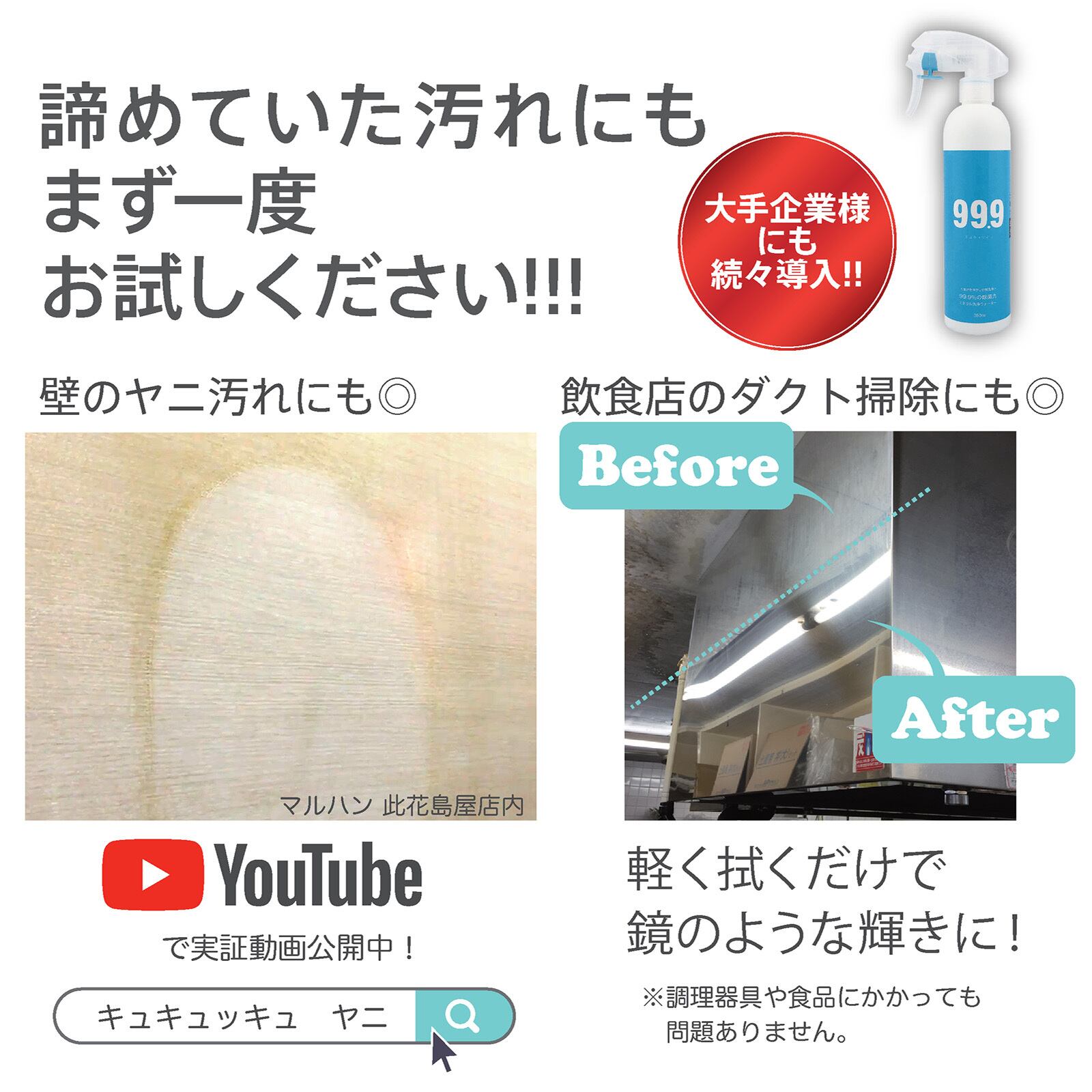 どんな洗剤を使用してもなかなか取り除けないヤニ汚れに99.9洗浄は抜群の効果を発揮します。